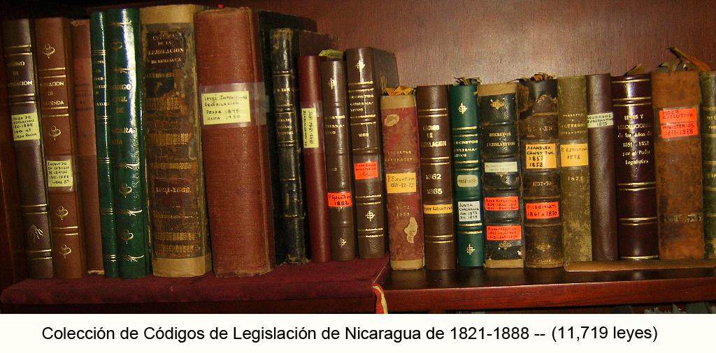 Yo dispongo de una colección de 11,719 documentos de leyes, decretos gubernativos y disposiciones legislativas y ejecutivas emitidos en Nicaragua desde 1821 hasta 1888 y publicados en el siglo XIX en compilaciones oficiales organizadas por don Jesús de la Rocha y otros recopiladores de esa época, las que he instalado en la biblioteca virtual de mi Fundación Enrique Bolaños en la colección de “Leyes, Gacetas y Tratados”, en la sección “Códigos de Legislación de 1821 a1888”.