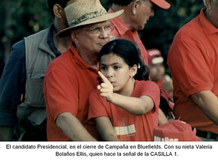 Enrique Bolaños, candidato a la Presidencia de la República por el gobernante Partido Liberal Constitucionalista, declaró poco después de votar, que se alzará con la victoria electoral con amplia ventaja, luego de depositar su voto en el Colegio San Pedro Claver, ubicado en el kilómetro 19 Carretera Masaya-Managua. “Por lo menos 53% vamos a tener nosotros, el partido sandinista lo más 44%”, dijo”.